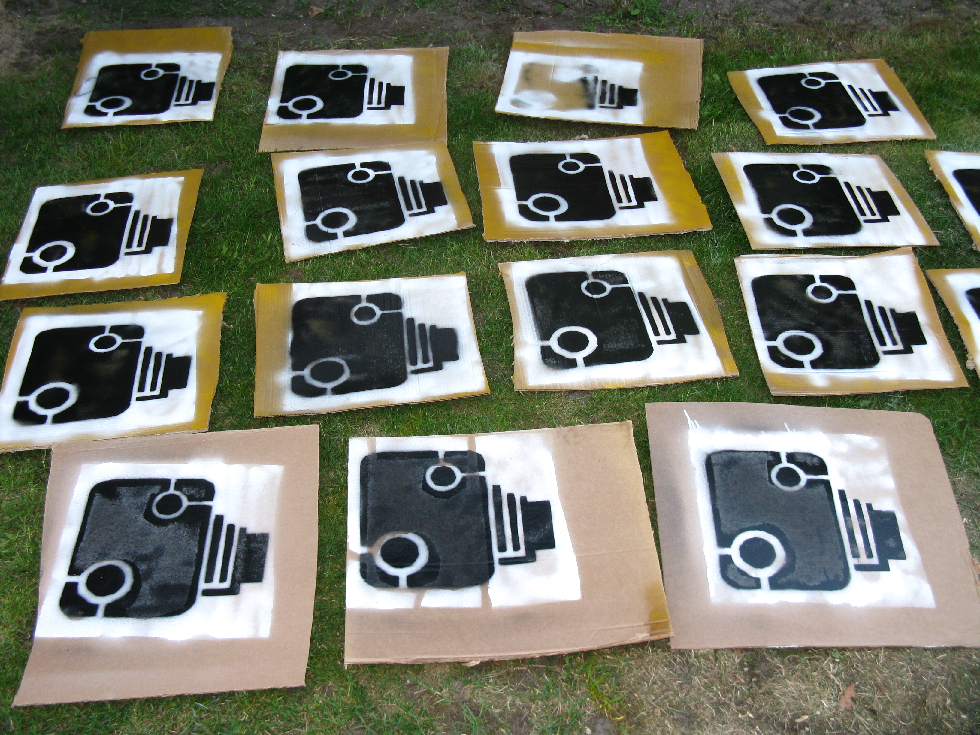 Izgatavots trafarets, lai brīdinājumi kļūtu nedaudz vizuāli pievilcīgāki. Sanāk iztērēt krietni vairāk krāsas, bet toties pašam prieks par rezultātu – turpmāk, iespēju robežās, tiks likti šādi. Sāk iet uz beigām kartona krājumi – ja kāds zina, kur krājumus iespējami lēti papildināt, lūdzu, komentāros atstājiet info.